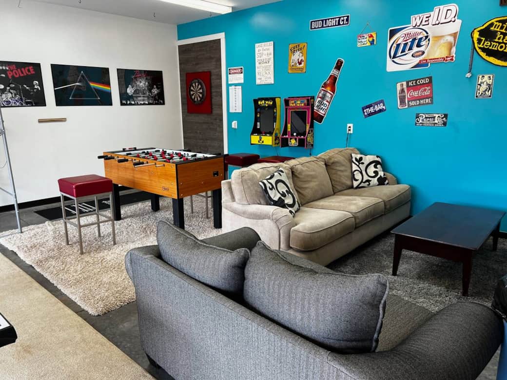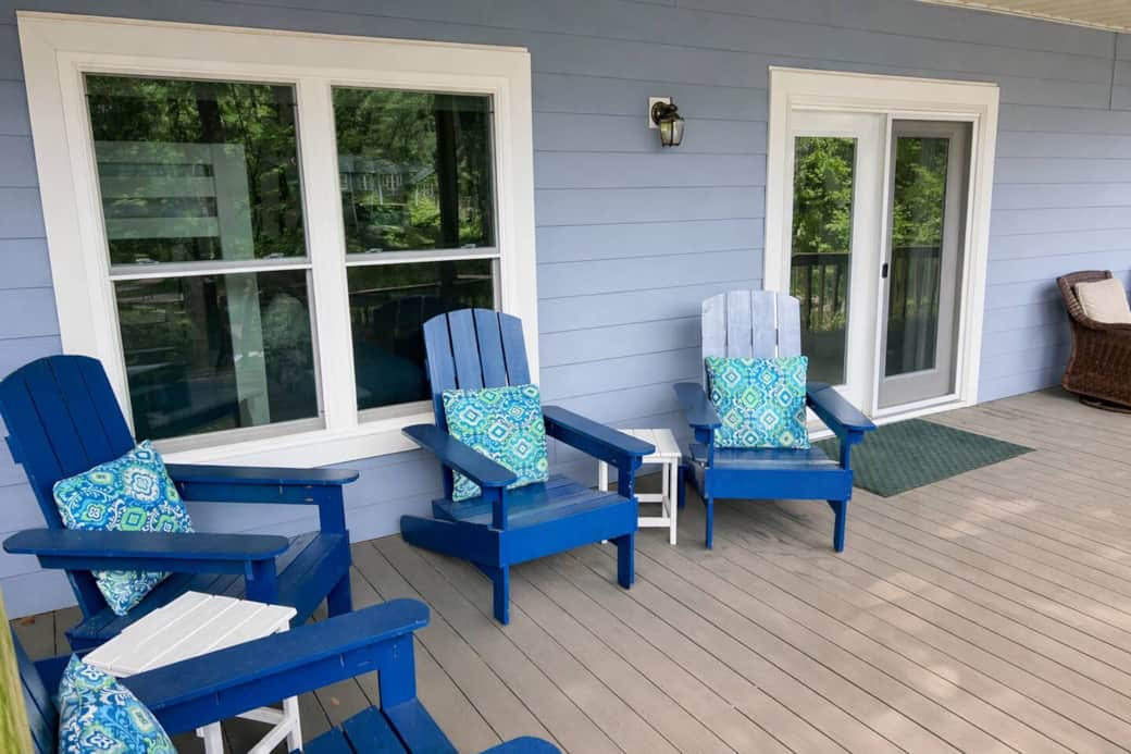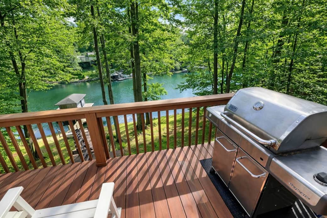 Two private docks with seating and easy water access, perfect for swimming, lounging, and boating in a quiet cove