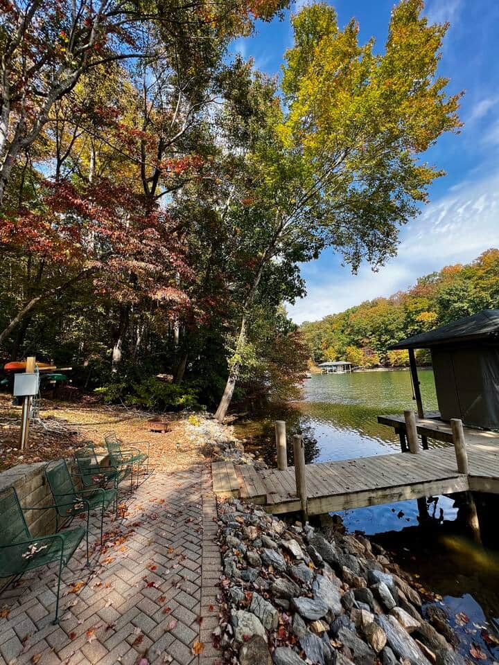Private lakefront home on 5 wooded acres, offering a peaceful setting with easy access to the dock and water.
